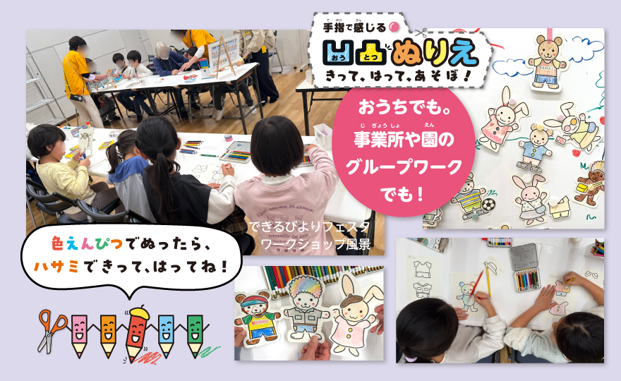 できるびよりフェスタのワークショップでで大人気の「凹凸ぬりえ」です。